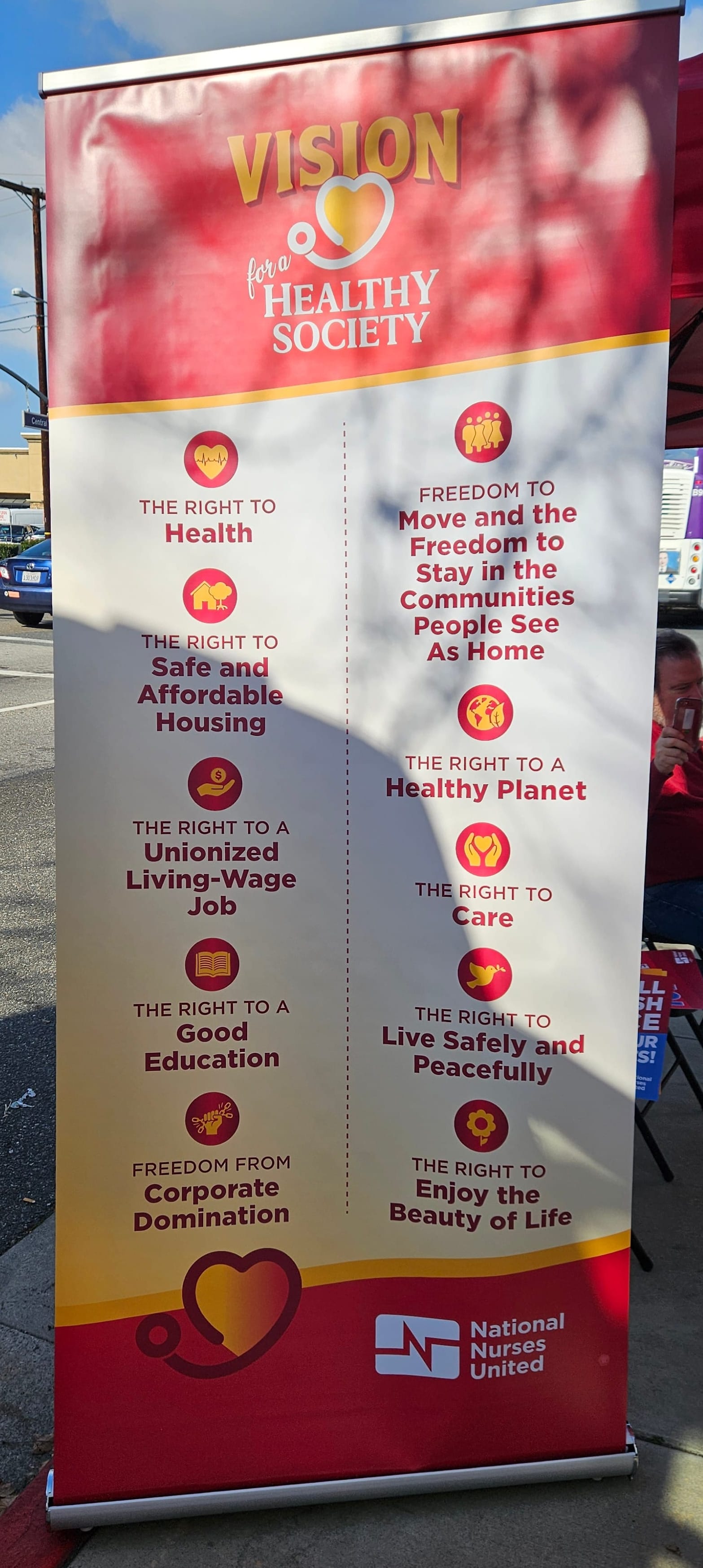 Representatives of our group participated in launching the National Nurses United’s and the California Nurses Association’s nationwide Red Alert tour January 24 at Glendale Memorial Hospital. The goal is to save hospitals from closures and to restore MAGA politicians’ $1 trillion cut to Medicaid, which by 2027 will leave 1 million Los Angeles County residents without healthcare coverage and 3.3 million without coverage statewide. Get started by signing on to the nurses’ 10-point vision for a healthy society and by contacting your Congressional representatives to join nurses in their call to restore full healthcare funding.