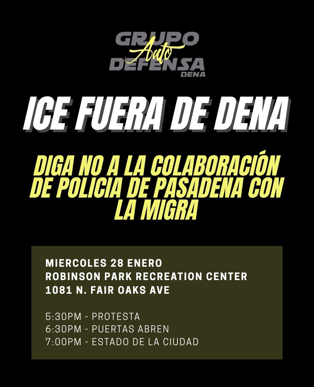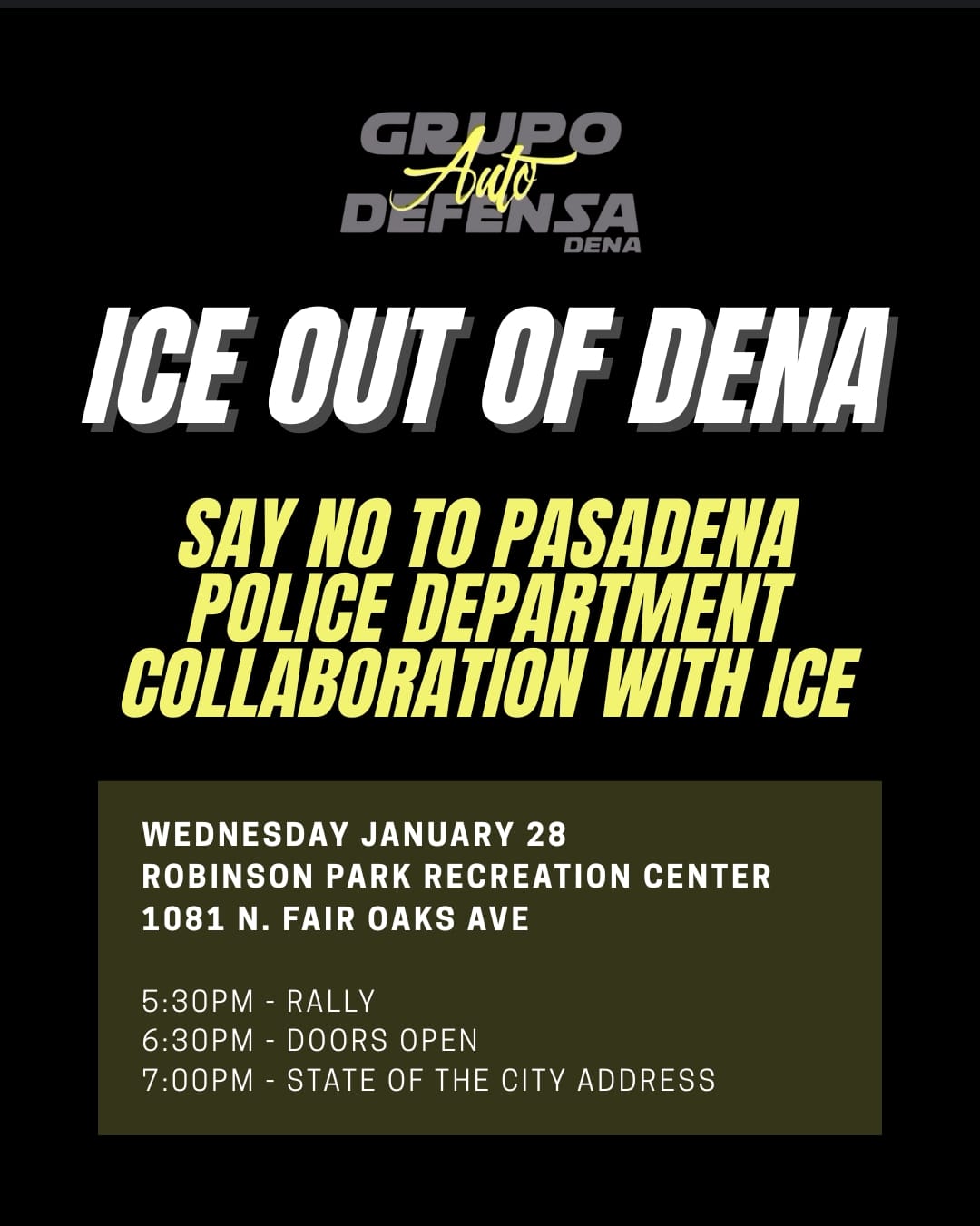 Please join to stand in solidarity with our community at a Grupo Auto Defensa rally before this years State of the City event.