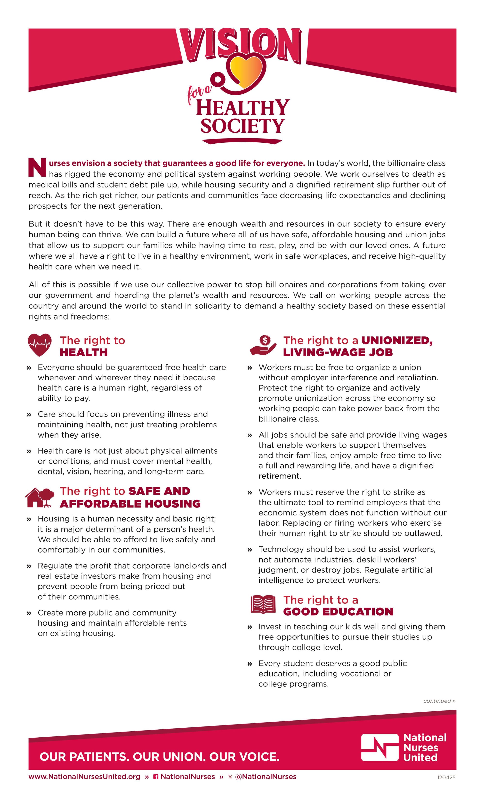 Join us on Jan. 24 as we launch the nurses’ national hospital tour to build power and community support across the country, with a goal of saving vulnerable U.S. hospitals from cuts or closure. Trump and Republicans have gutted health care programs like Medicaid — programs that keep our hospitals running — all to fund billionaire tax breaks and ICE. Together, nurses, patients, and our allies are fighting back against this cruelty, demanding a healthy society based on care and compassion.
